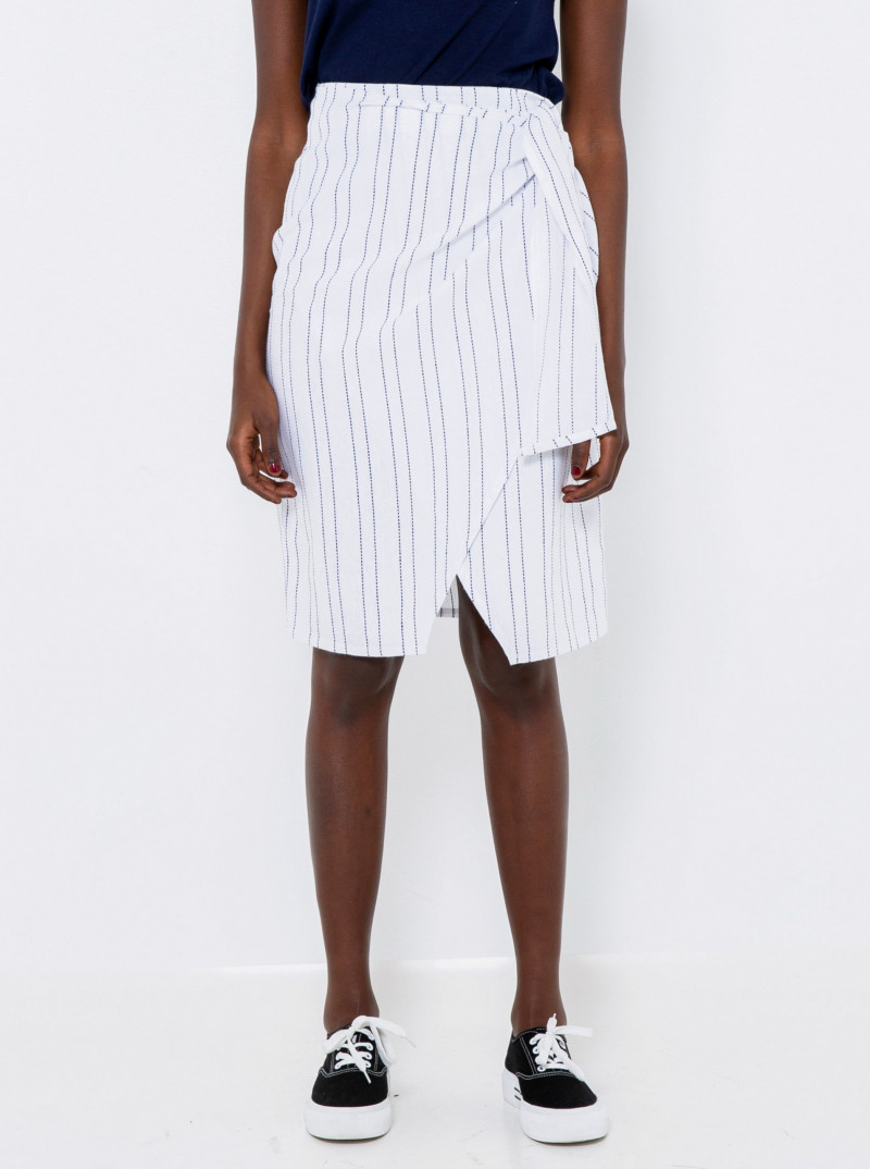 Bílá lněná pruhovaná sukně CAMAIEU - Dámské