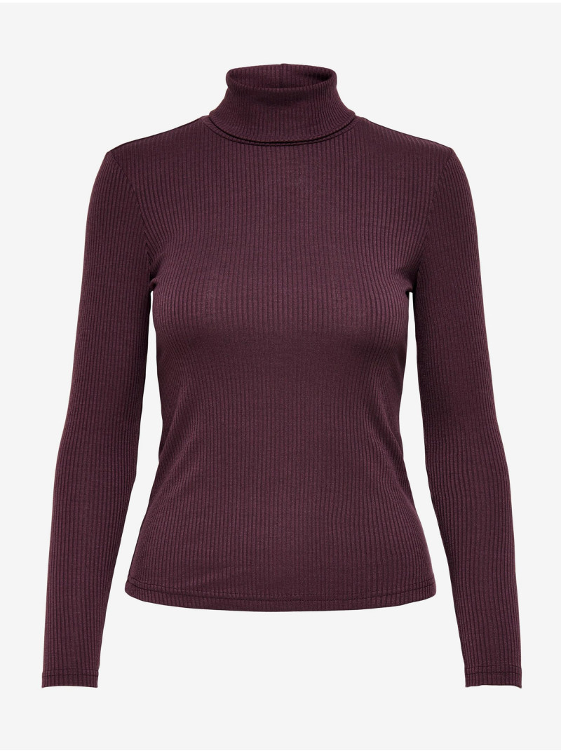 Vínový žebrovaný rolák ONLY Villa - Dámské