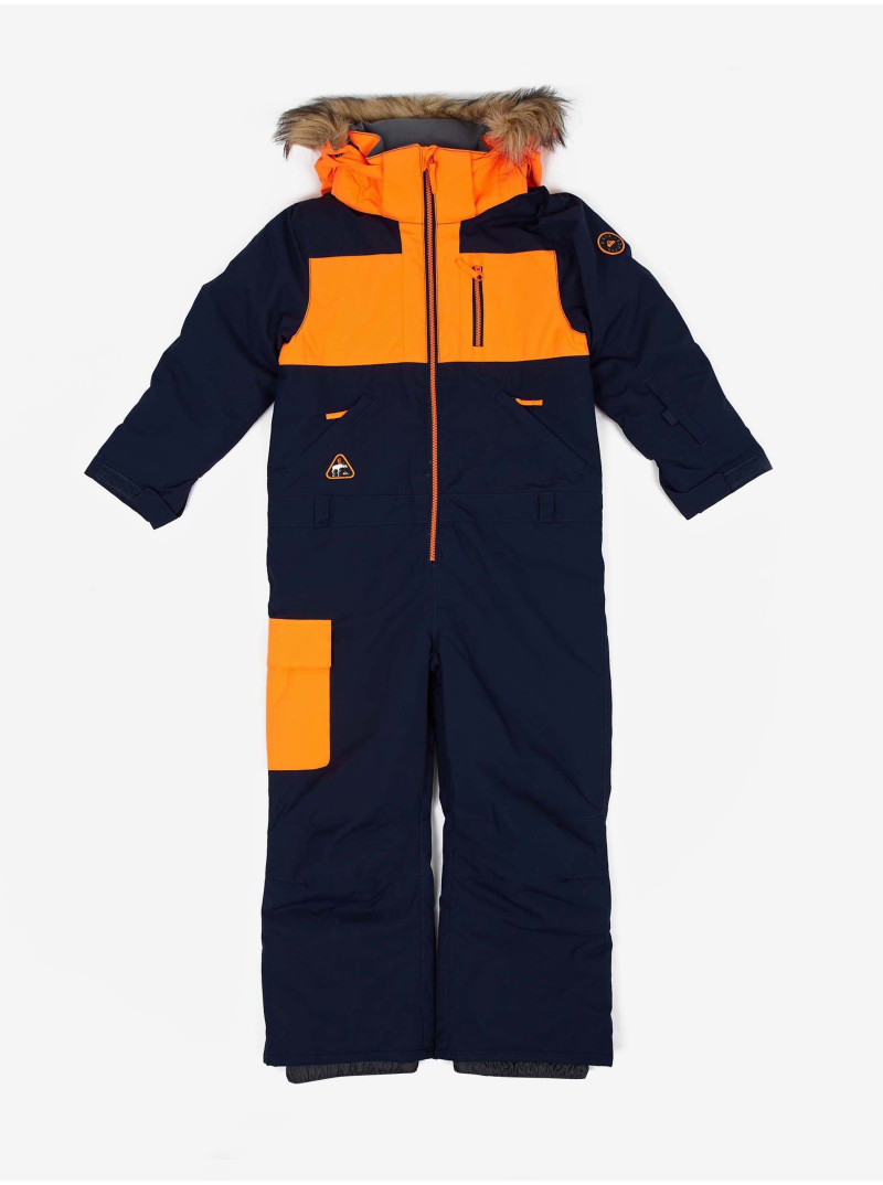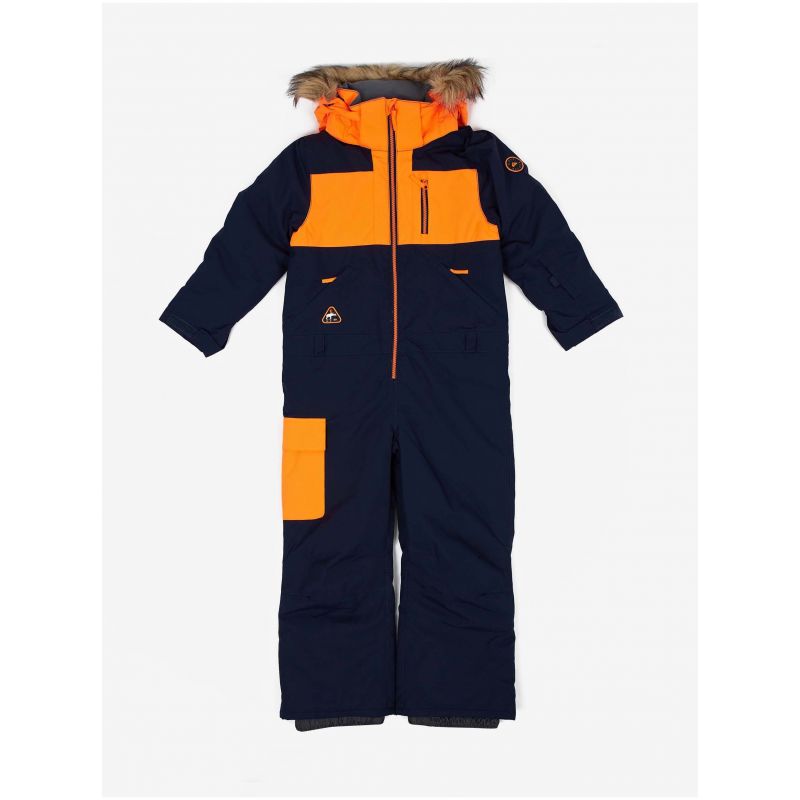 Oranžovo-modrá klučičí zimní kombinéza s kapucí a kožíškem Quiksilver - unisex