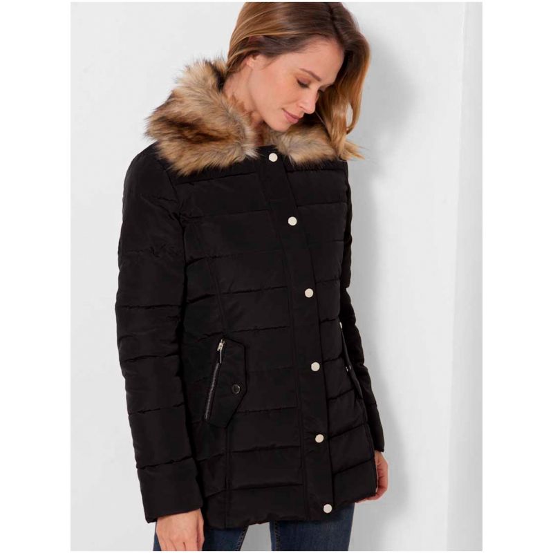 Černá prošívaná zimní bunda s kožešinovým límcem CAMAIEU - Dámské