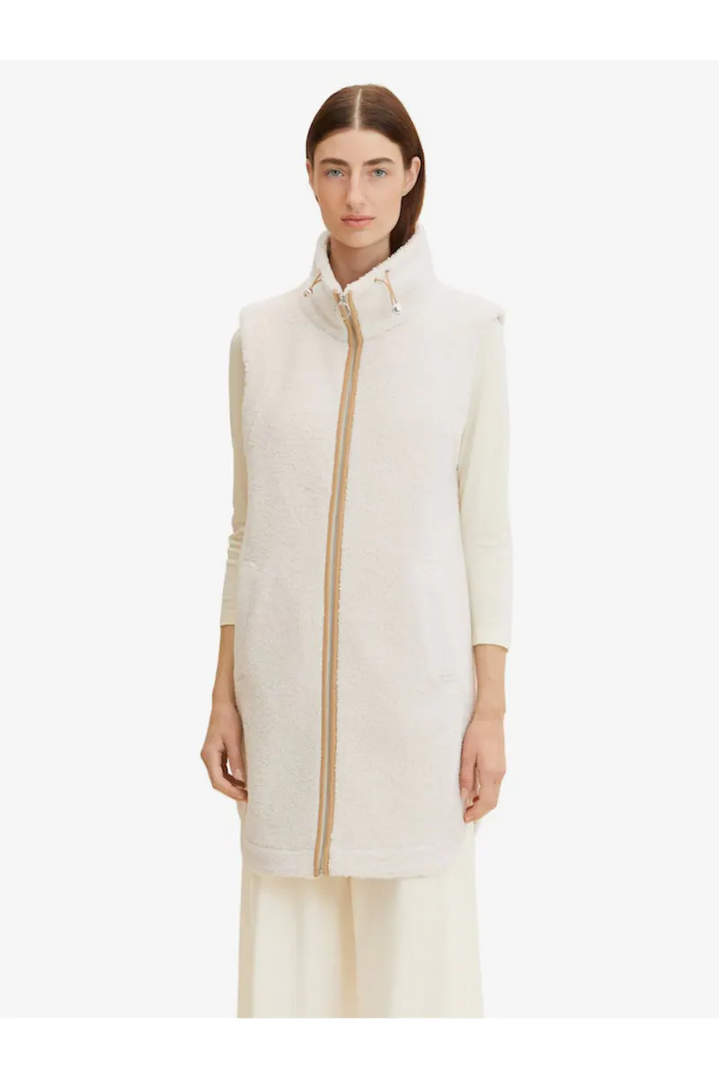 Krémová dámská dlouhá mikinová vesta z umělého kožíšku Tom Tailor - Dámské