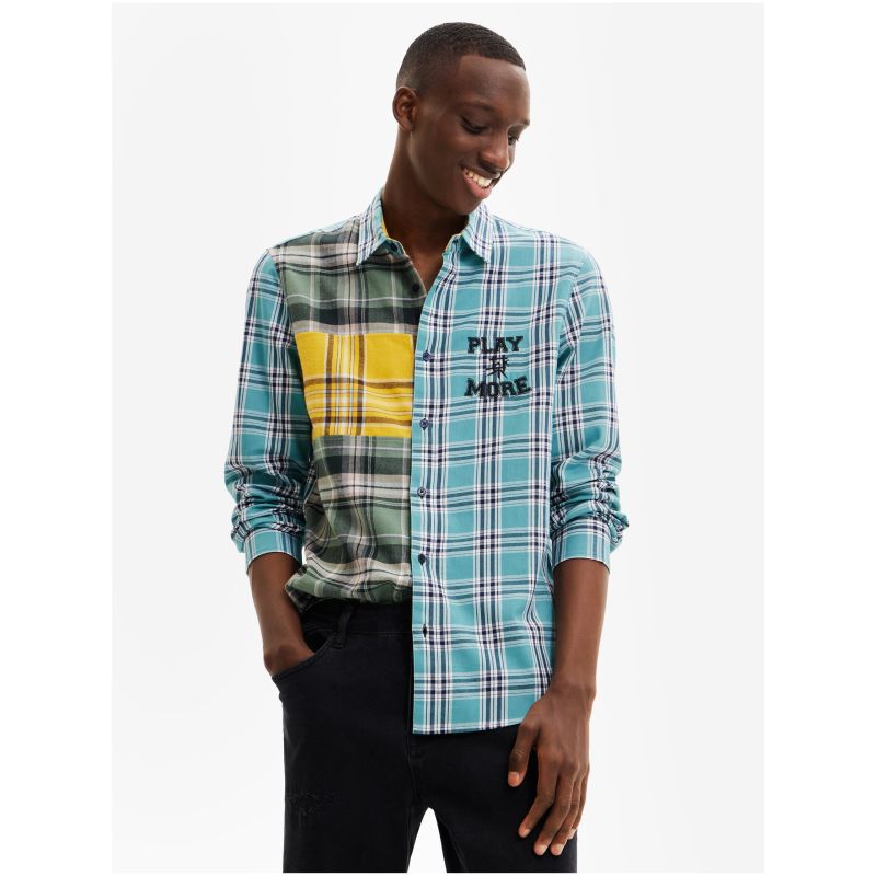 Zeleno-modrá pánská kostkovaná košile Desigual Rod - Pánské