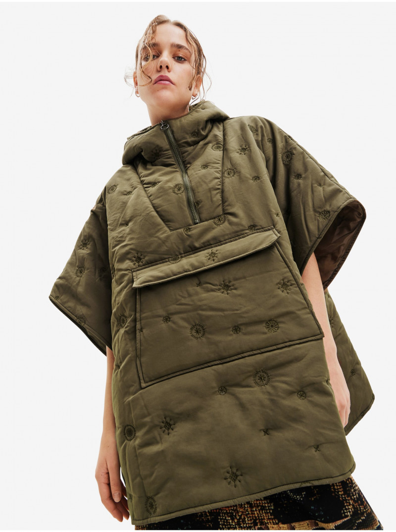 Tmavě hnědé dámské zimní pončo Desigual Padded Lisboa - Dámské