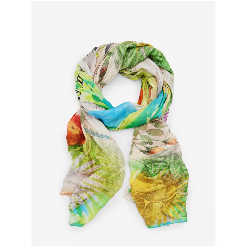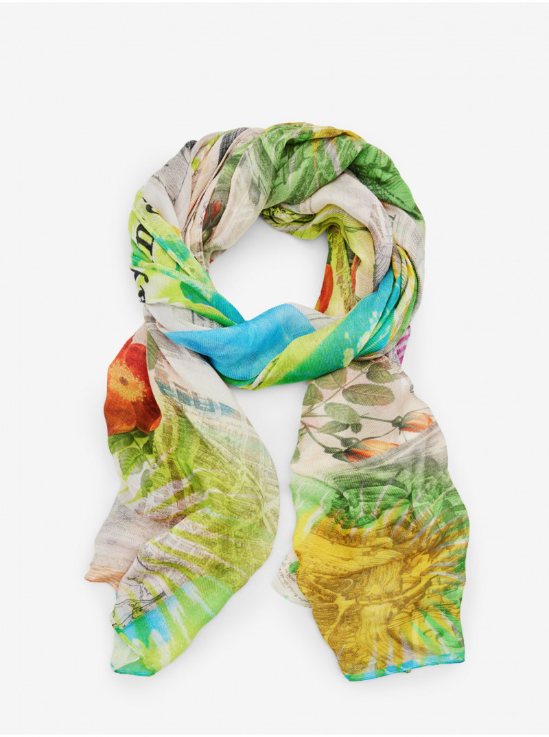 Oranžovo-zelený dámský vzorovaný šátek Desigual Newspaper